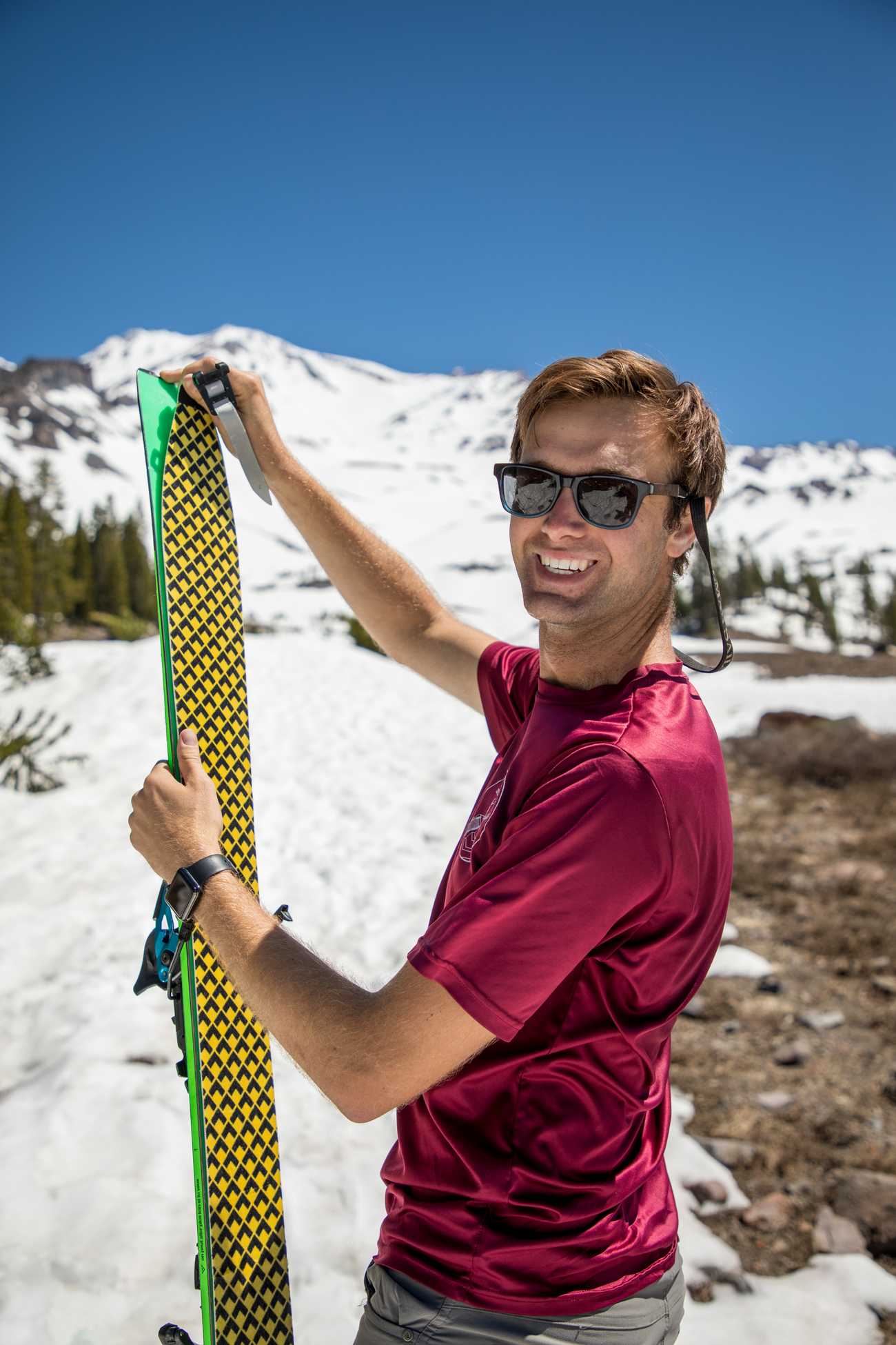 By this point I was so exhausted the camera had to go away — so the photographs end here. Our adventure didn't though. On my ski down to Lake Helen I took a large fall and damaged my ski bindings enough that I wasn't confident skiing in them the rest of the way down. So while Josh had a nice ski back to the car, I joined McKenzie and Jeevan for a slog through summer snow.