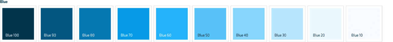 From my color audit, the most commonly used hue in the most shades by far was blue. This neutral color is extremely useful for many UI accents such as hover-states, highlights and buttons. As a result, the blue scale contains ten shades — more than any other hue.