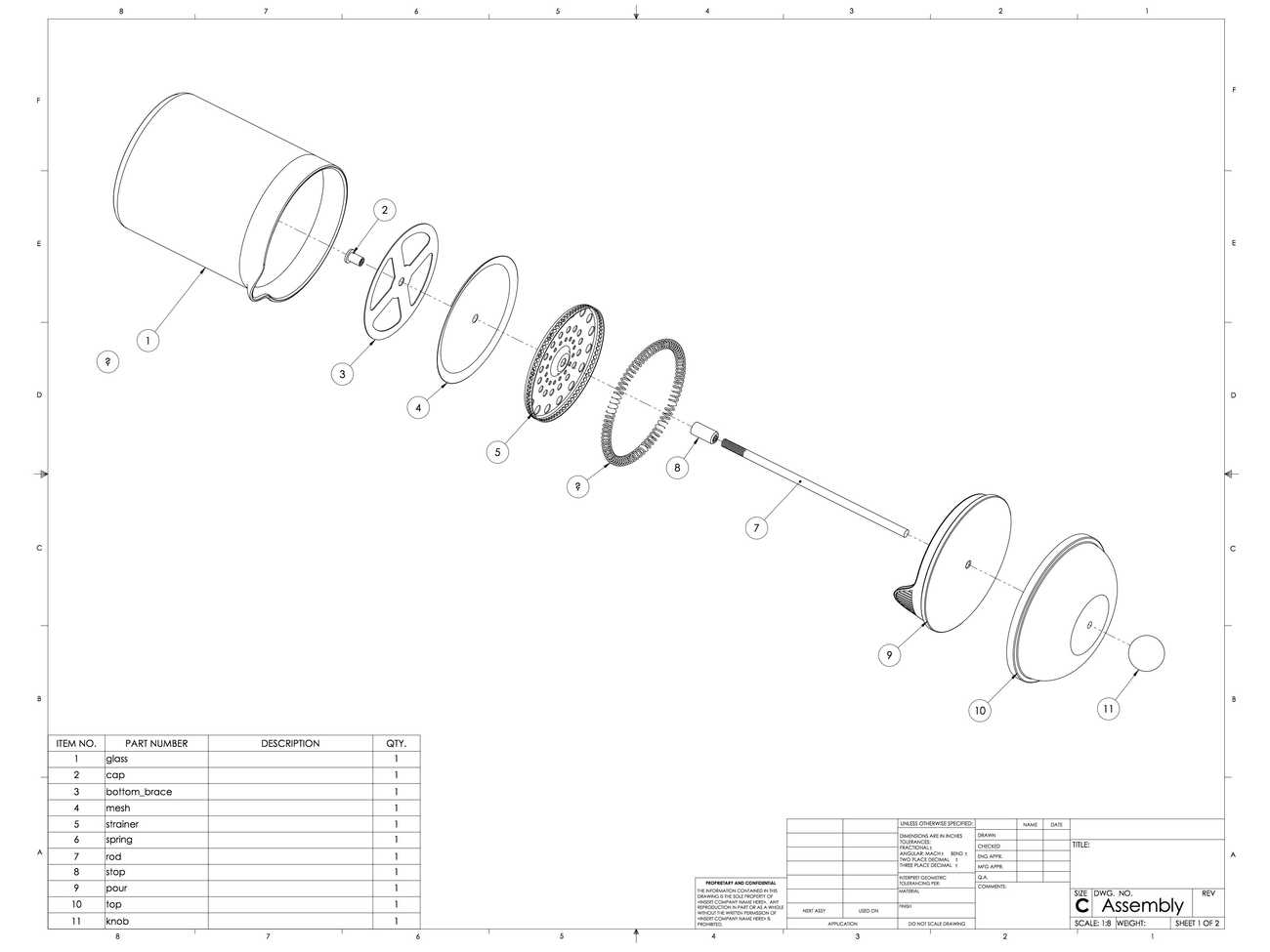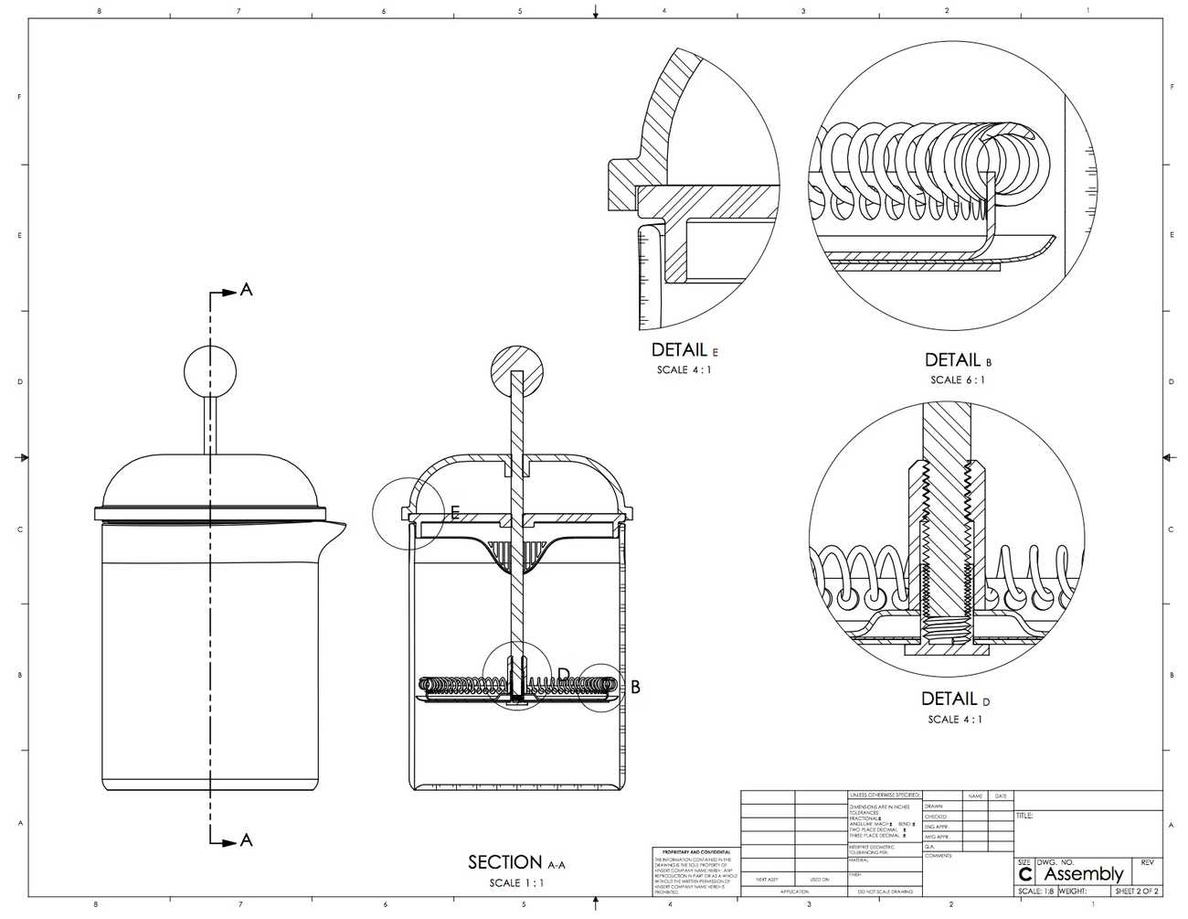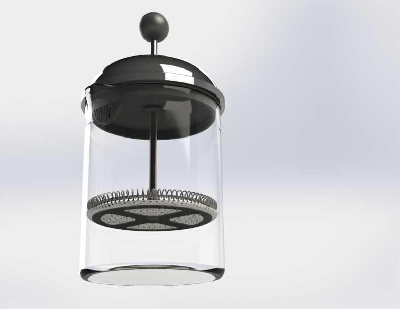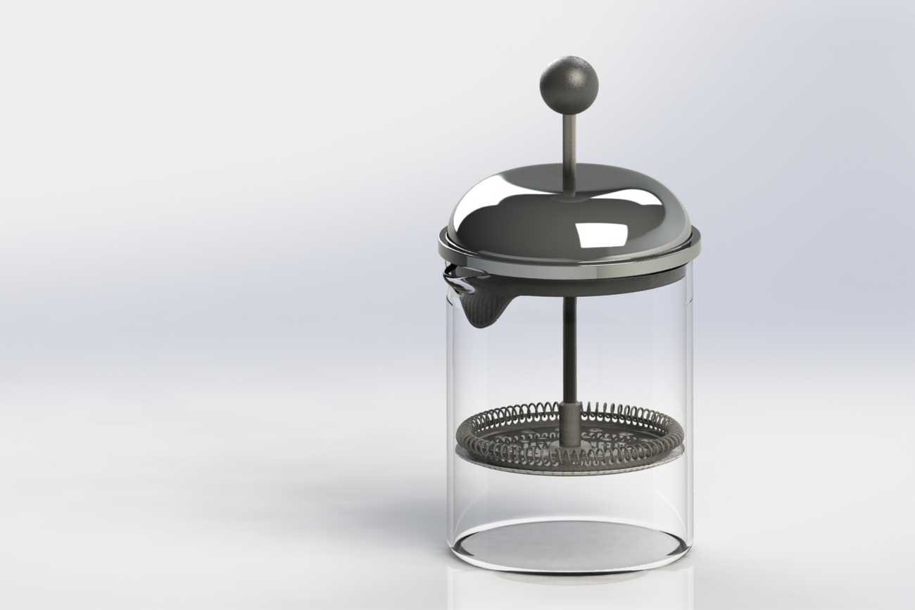 I modeled this French Press in SolidWorks, using my favorite coffee apparatus product as reference. I made the model for a Computer Aided Design course and made the renders just for fun. The course focused on modeling from a mechanical engineering perspective; namely preparing the assets required for mass production.