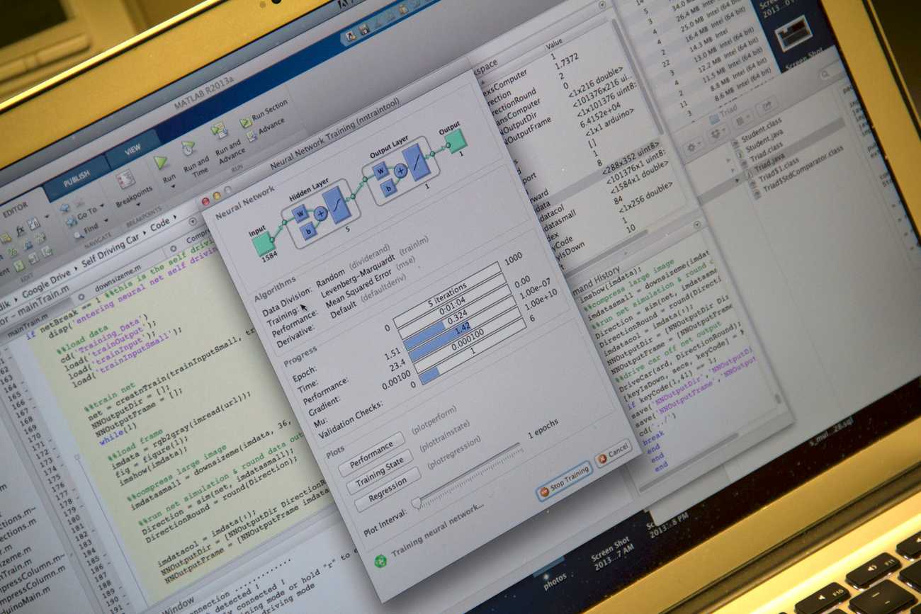 After running the car through several courses and building up a training corpus, we were ready to train a neural network.
