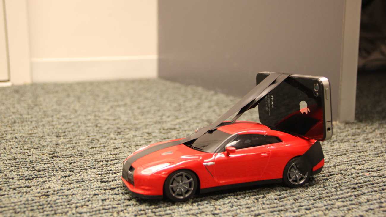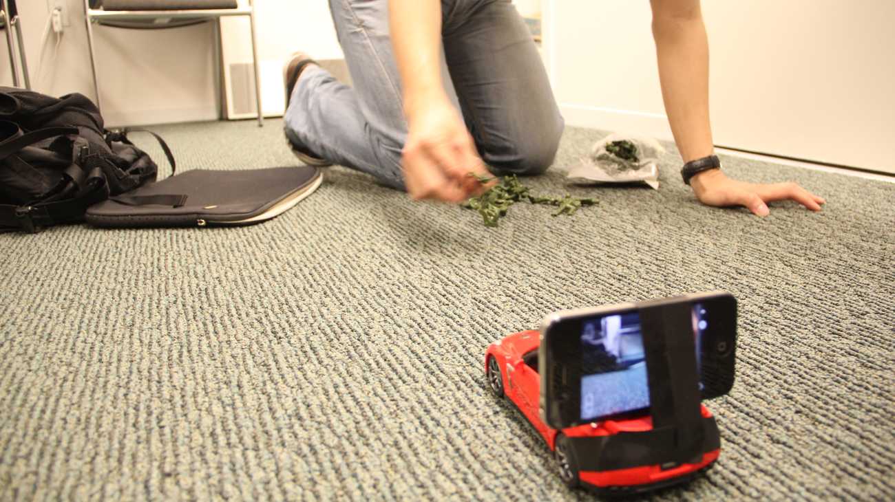 To collect images wirelessly from the car, we attached an iPhone to it and used an app to stream pictures over wifi to a laptop.