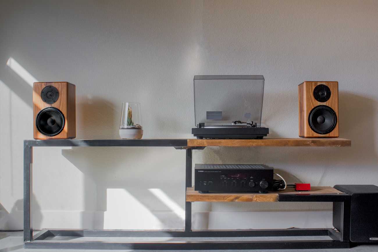 Nothing beats a custom set of cabinets for a home-stereo system. This pair of stereo monitors is made from Cherry and Walnut. I finished these units with Tung Oil and installed gold plated cable connectors in the rear. After initial research, the units took about two weekends to complete.