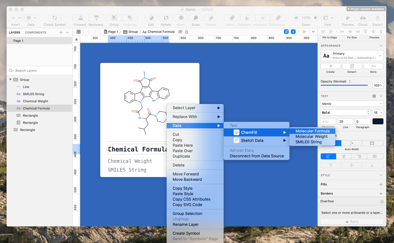 I made a Sketch plugin. It provides fun chemical data to Sketch when you ask it to. Here's the GitHub and here's a case study that gives a good overview of the project.