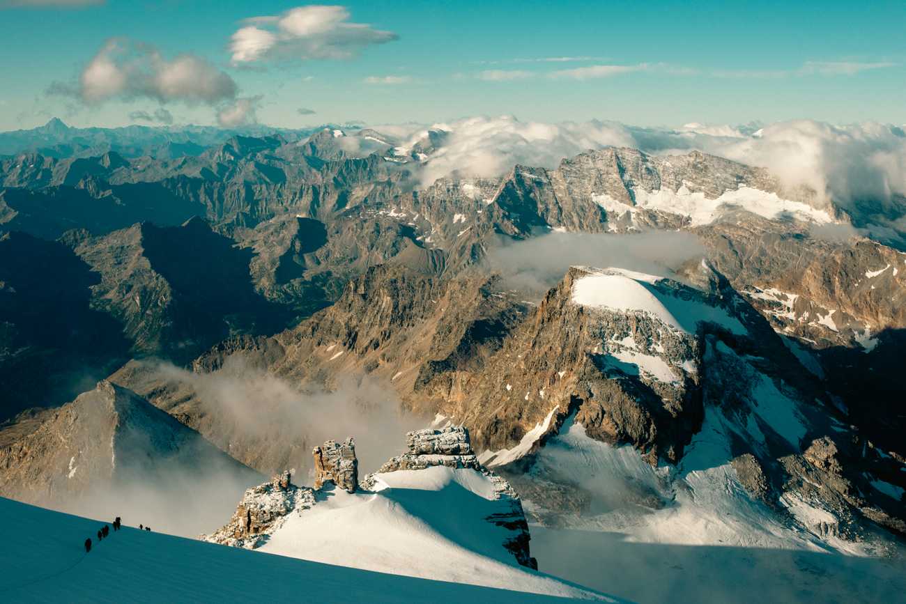 I could feel the steel of the ice axe in my hand acting as a radiator, sucking any remaining warmth in my fingers out through my gloves, and dissipating it into the thin atmosphere around me. And yet this tool turning my fingers purple was the key anchor keeping me locked into the track that wound up the face of Gran Paradiso, Italy’s tallest peak. I looked down below me and saw the Europeans Alps laid out into the distance, and a line of climbing crews snaking their way up the face towards me.